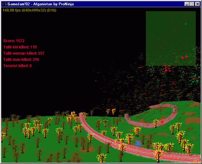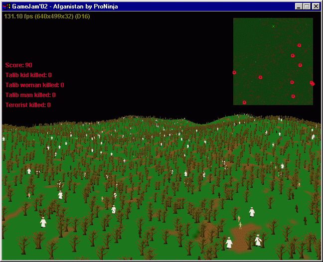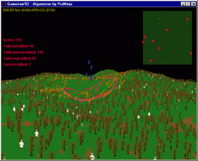 You fly in a plane and drop bombs on the ground. Task is to kill the terrorists