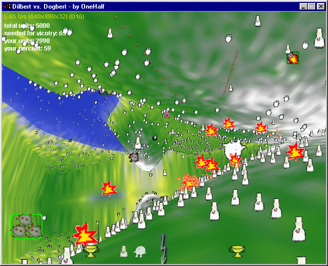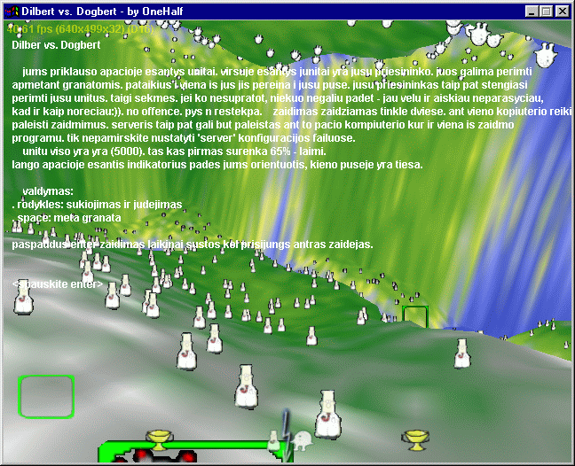 Dogberts. Each of them runs on his own terrain and tries to shoot the