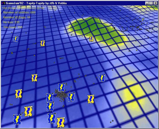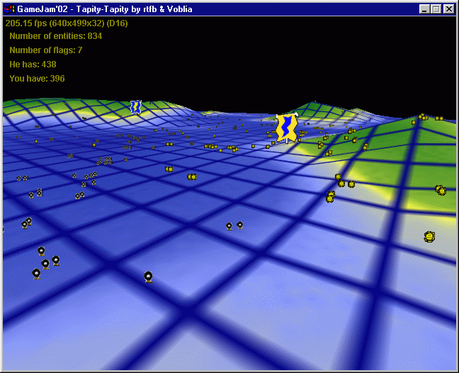 A two player networked game. Each player can put flags that either