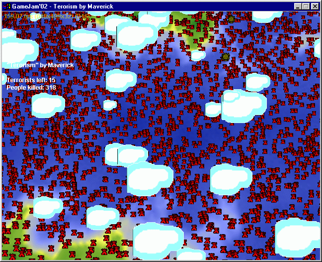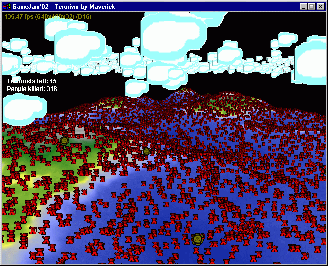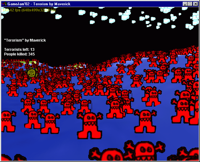 you can shoot terrorists (smiling suns) with a mouse. Terrorist explodes when