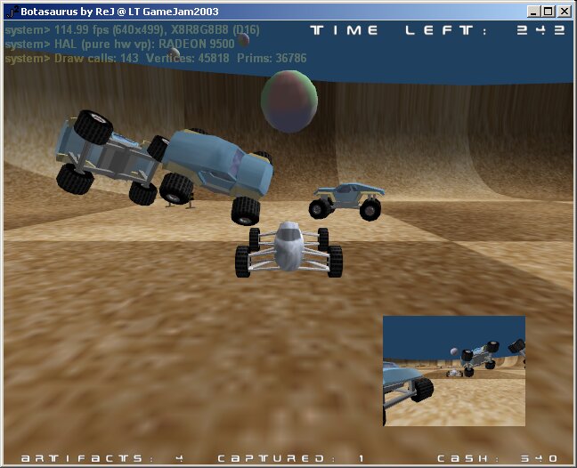 Here are the games made during LTGameJam'03. Requirements: DirectX 9.0 runtime, DX7-level video card (GeForce/Radeon), decent CPU (1GHz and up). Source code here is just the game sources - you'll need the engine and the datafiles for the particular game also. See detailed instructions in engine page.