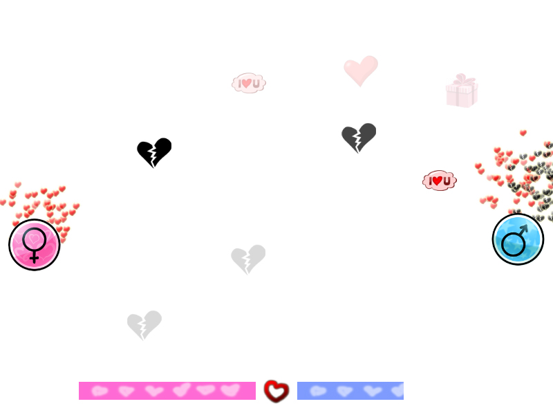In the game you control two bubbles: him and her. Use mouse to move them. The closer the mouse is to the bubble, the higher it influences them. Collect items and avoid broken hearts at all costs!